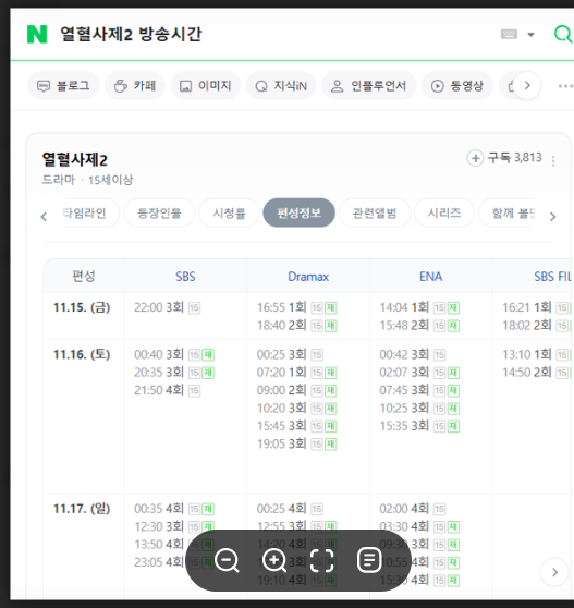 방송 채널 : SBS TV, SBS Plus, SBS funE, Dramax, ENA 등등